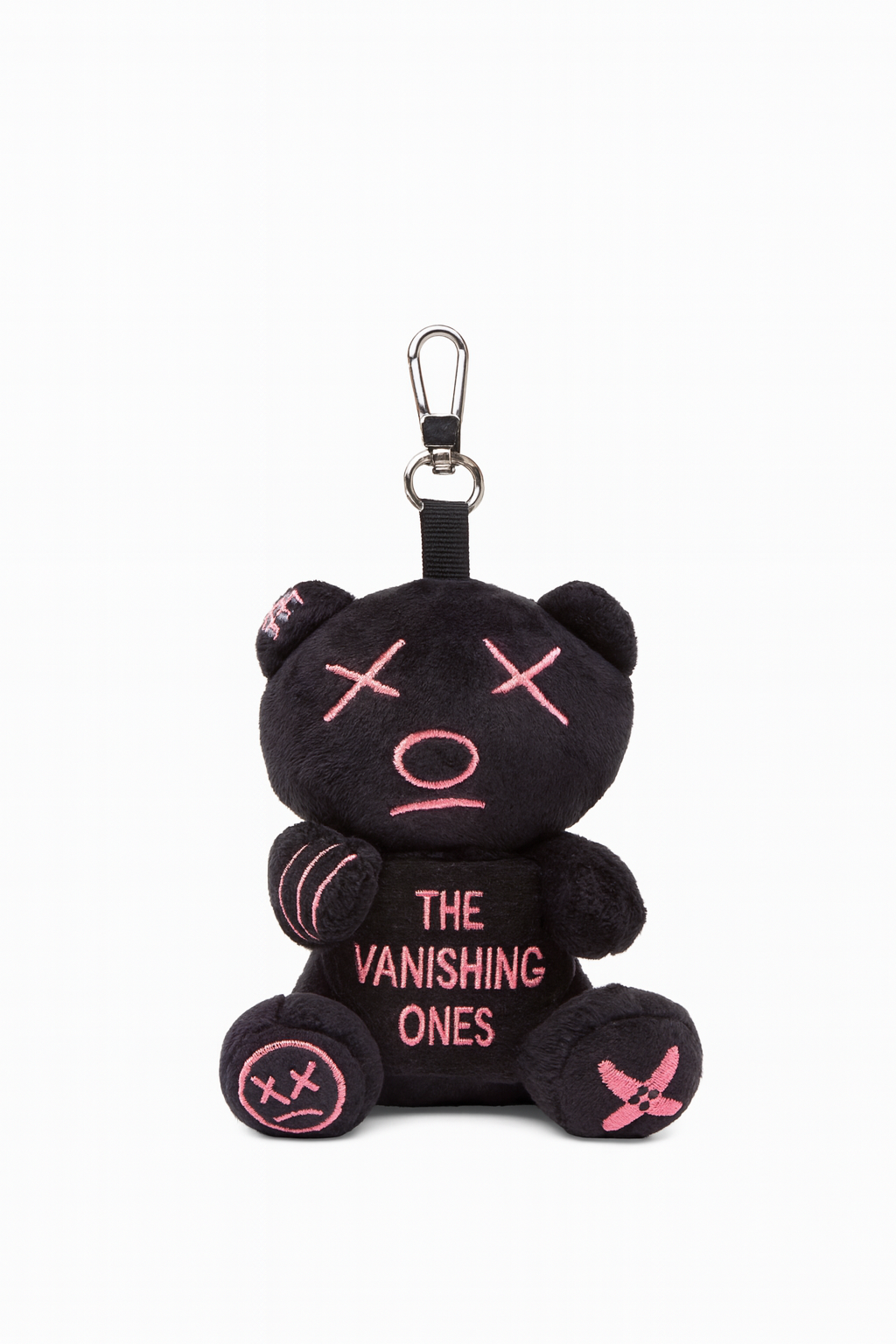 Meet your new little menace — the Labubu Shreddy Bear Keychain. This plush accessory combines cute and chaos in true The Vanishing Ones style. Made from ultra-soft black fabric, Shreddy Bear sports stitched pink X-eyes, a stitched mouth, and matching embroidered details — including “THE VANISHING ONES” across the front.